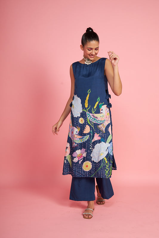 Sparrow Navy Ladies Coat with Velvet Long Dress ( set of 2 pcs)