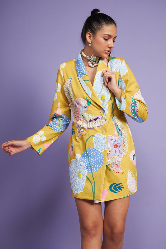 Zuri Mustard Blazer Dress with Boys Shirts Shorts Coord - Mom & Son