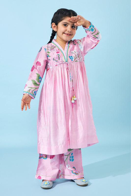 Raya Pink girls Embellished Long kurta & Pant (Set of 2 pcs)
