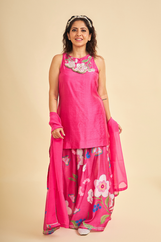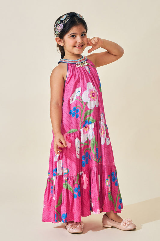 Raya Pink Girls Embellished Kaftan Top & Tulip Pant ( Set Of 2 pcs)