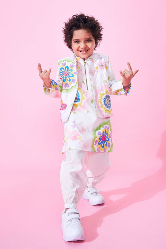 Mae Boys Embellished Kurta Set (Set Of 3 pcs)
