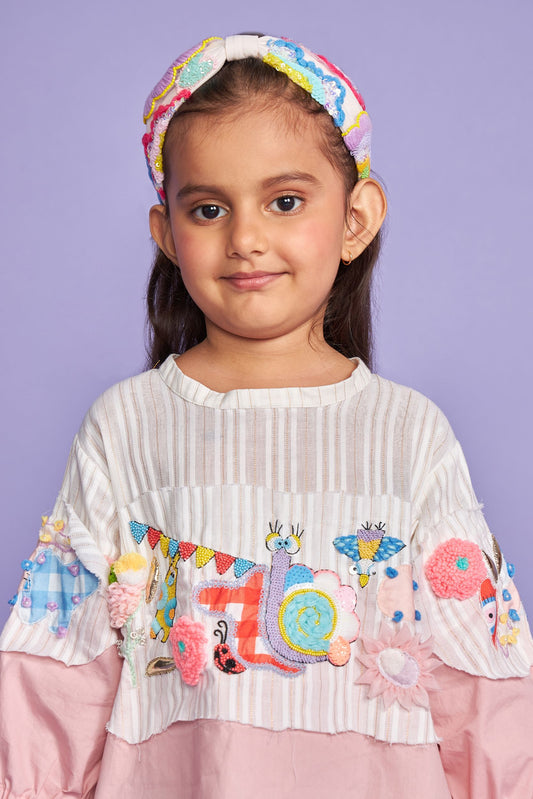 Fly High Pink Cotton Hand Embroidered Kids Dress