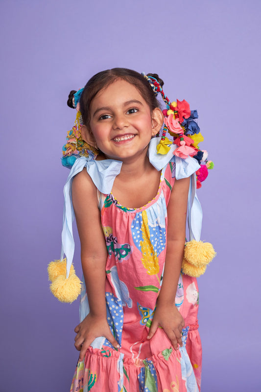 Flutter Bloom Embellished Printed Babydoll Kids Dress