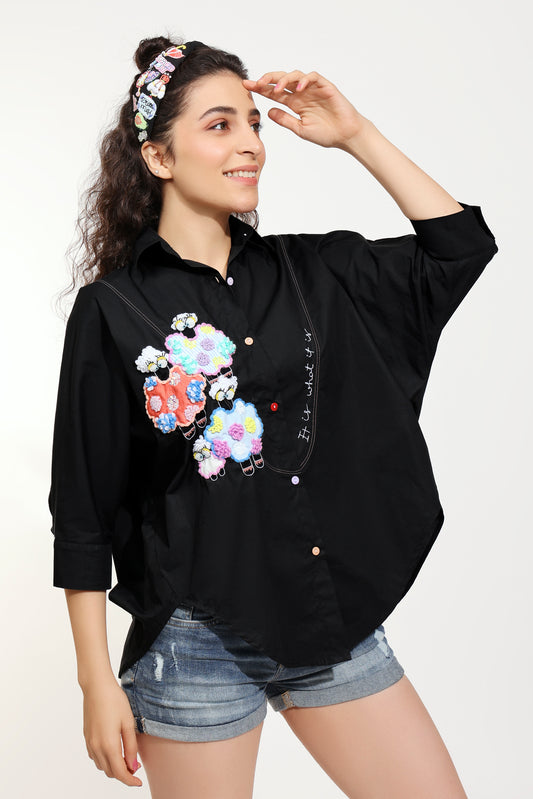 Ba-Ba-Black Sheep Embroidered Black Shirt
