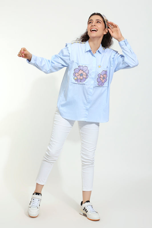RTS-Blue-Blah-Bee Embellished Blue Shirt