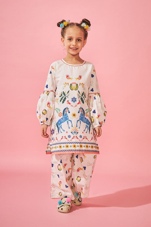 Pink Bloom Girls Embellished Cami Flared Trouser Co-ord (3 Pc)
