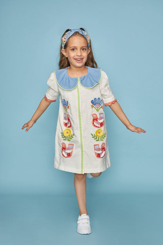 Cuckoo Kids Embroidered Peterpan Dress Bloom