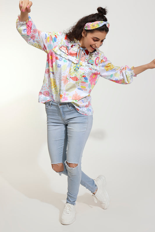 Blooming Meadows Girls Skirt With Floral Top and Stole (3 Pc Set)