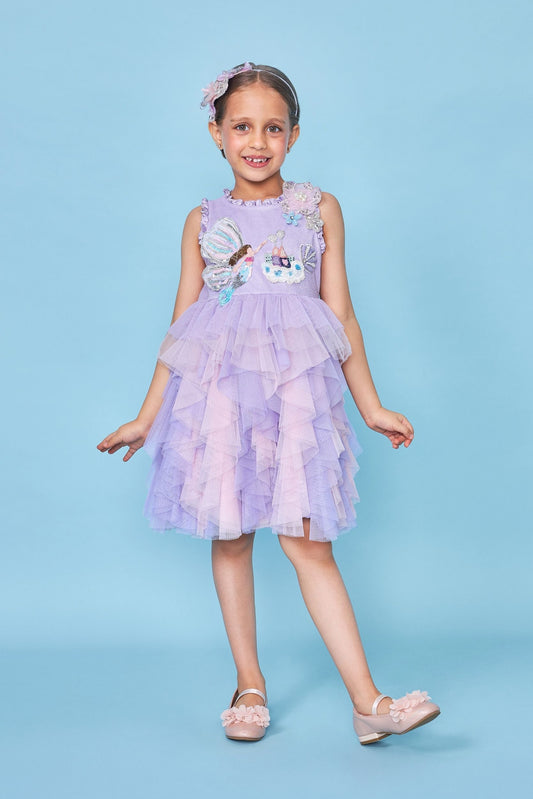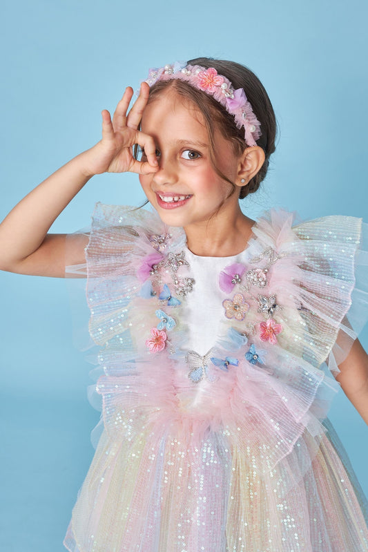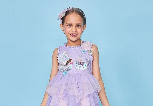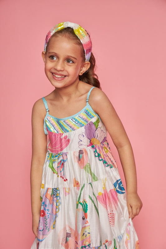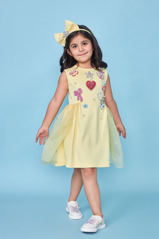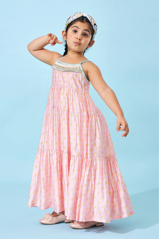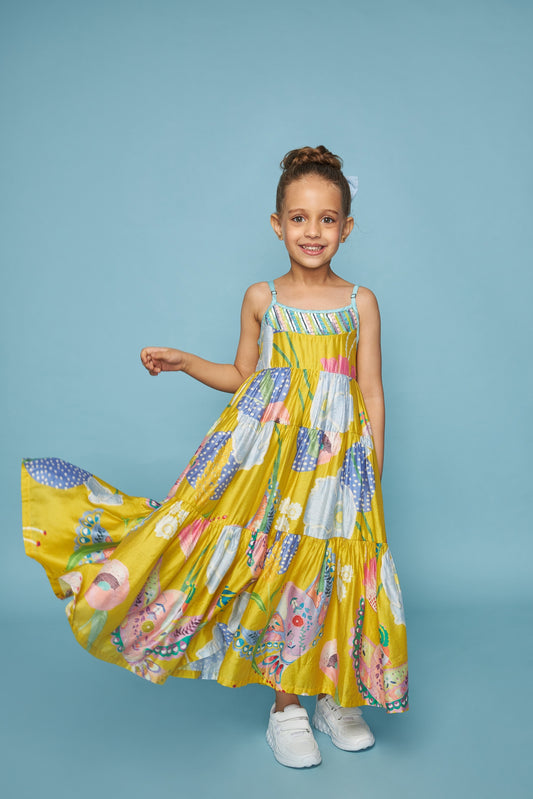 Yellow Bloom Kids Embellished Maxi Tier Dress