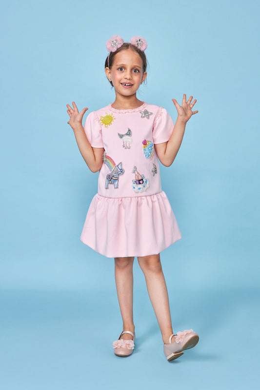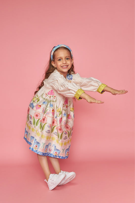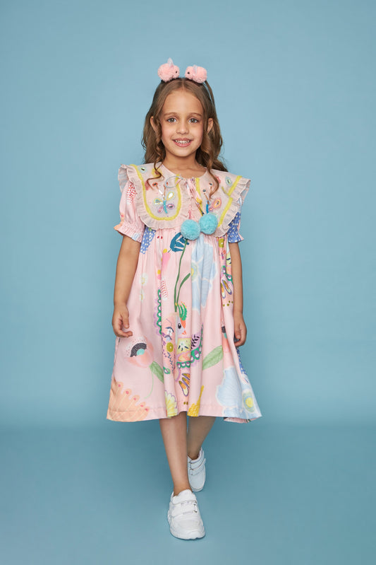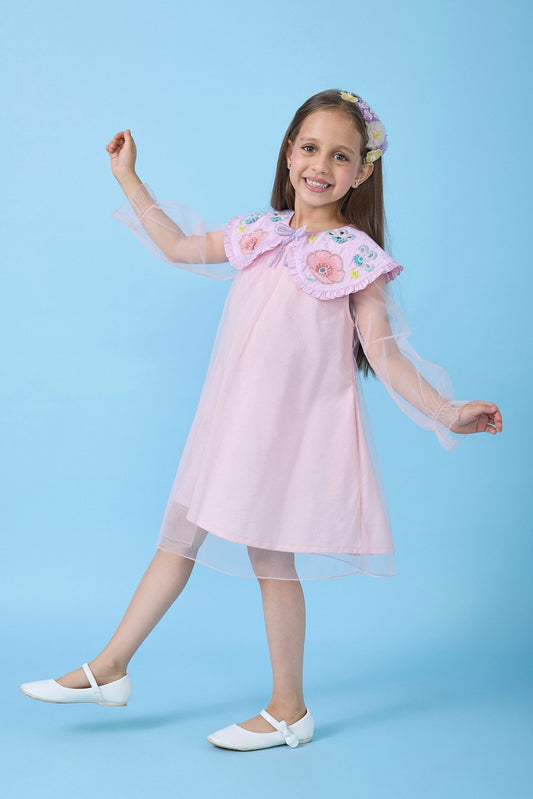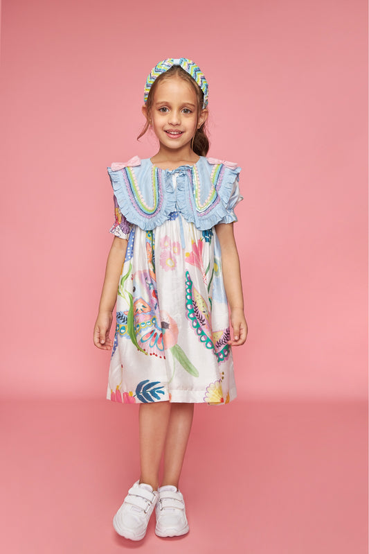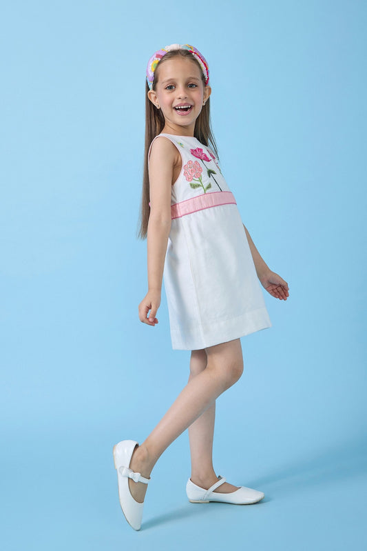 Jane Bow Collar White Kids Embellished Dress Bloom