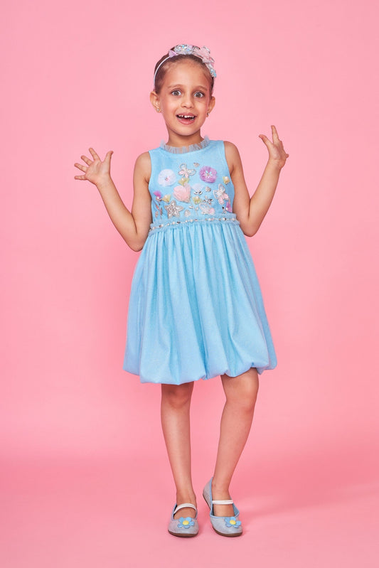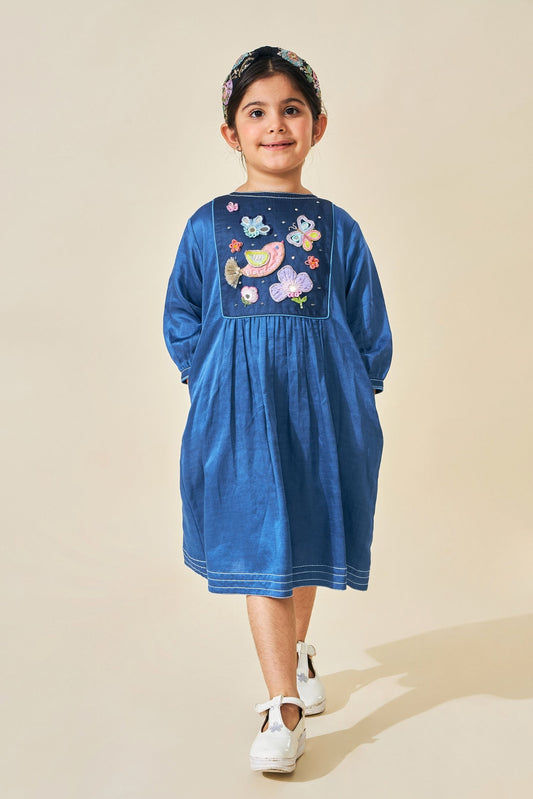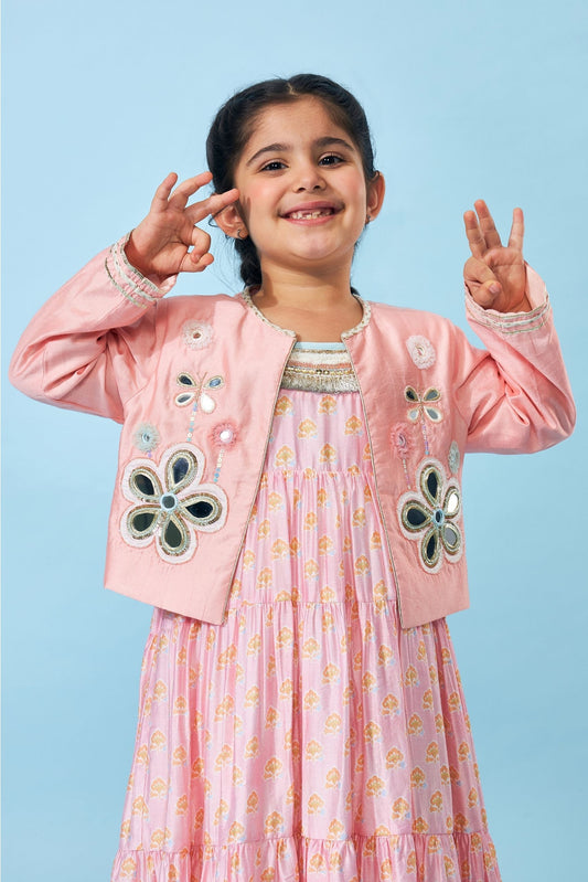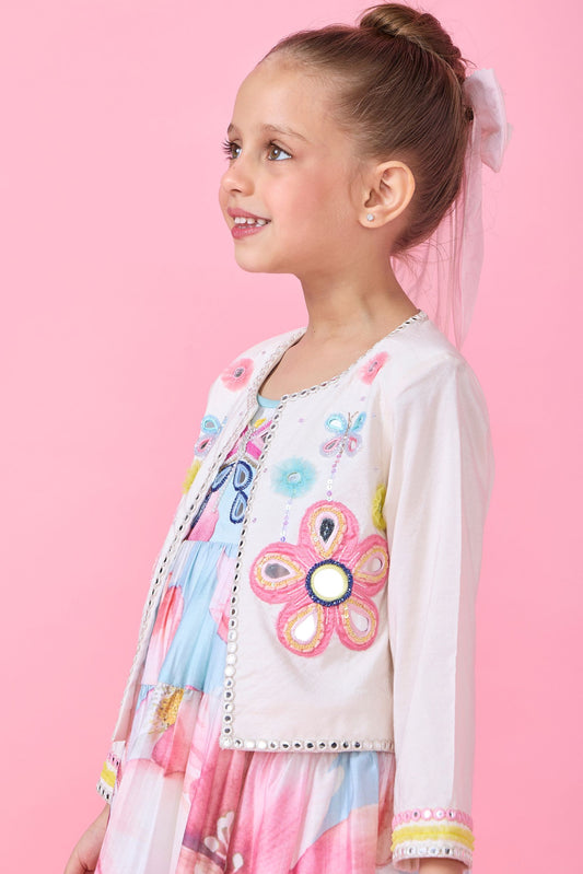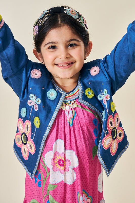 Flora Blue Girls Embellished Jacket- 1 Pc