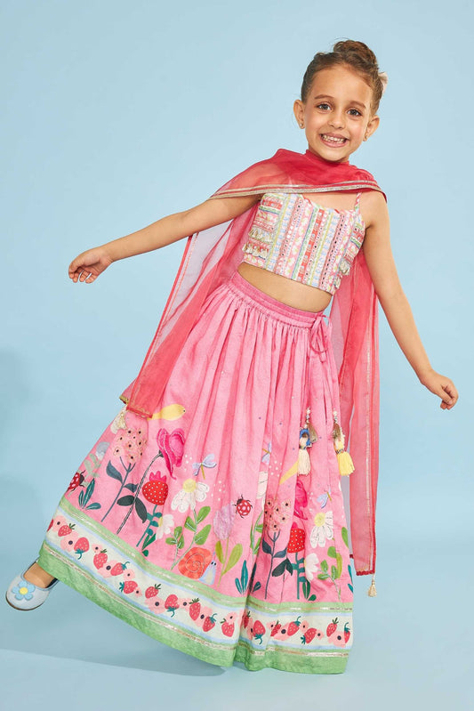 Freya Sage Girls Embellished Top & Lehenga (Set of 3 Pcs)