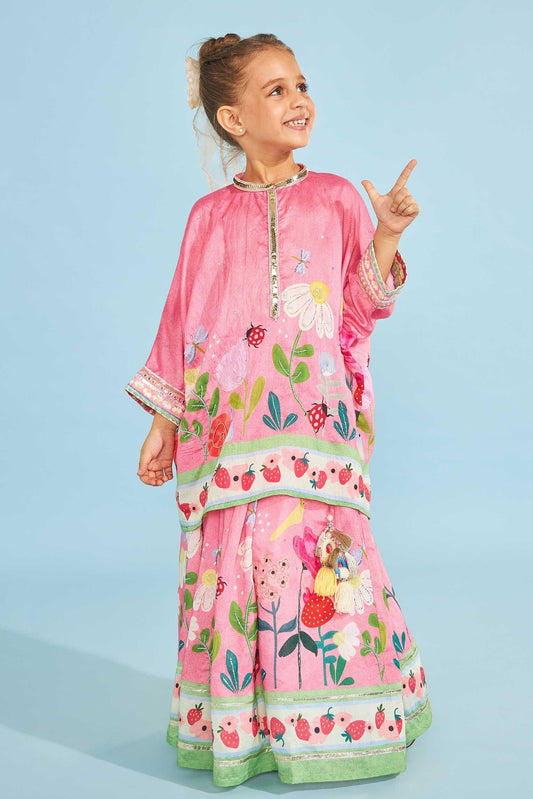Strawberry Girls Embellished Tunic With Skirt (2 Pc Set)