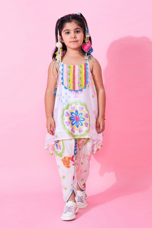 Mae Girls Embellished Handkerchief Top And Tulip Pant ( Set Of 2 pcs)