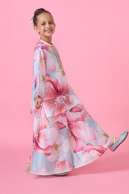 Sagewood Blush Girls Printed & Embellished Kurta And Palazzo Set (Set Of Two )