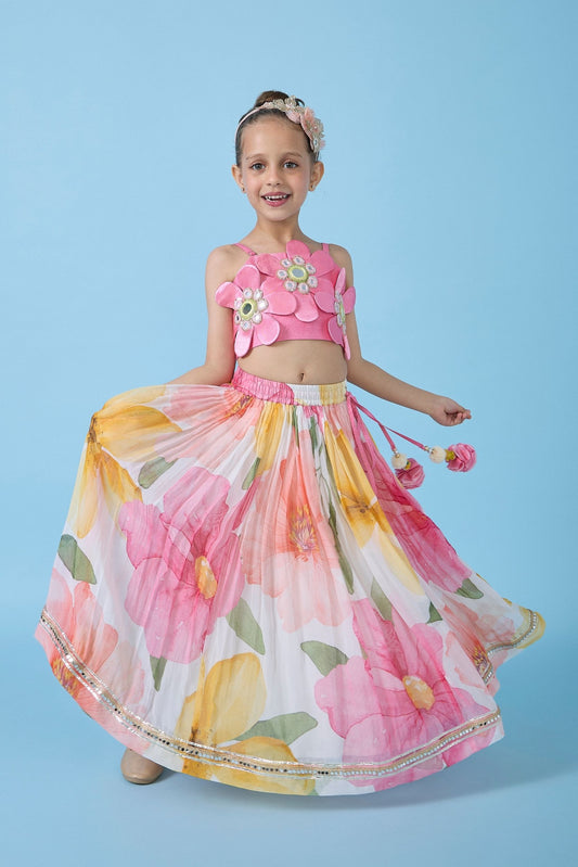 Blooming Meadows Girls Skirt With Floral Top and Stole (3 Pc Set)