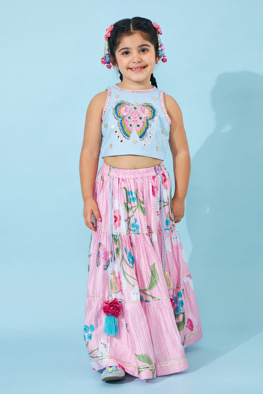 Mae Girls Embellished Crop Top Lehenga & Dupatta (Set Of 3pcs)