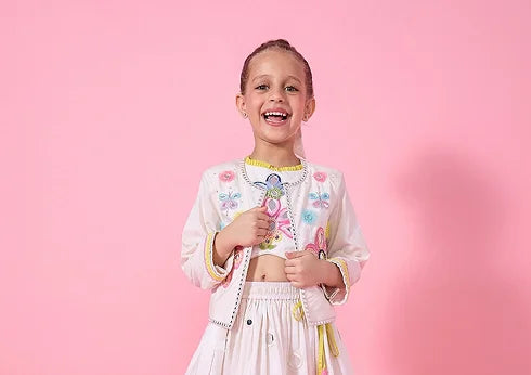 Riva Short Embroidered Girls Top & Skirt (Set of 3 Pcs)