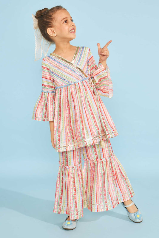 Candy Stripe Girls Embellished Wrap Top & Flared Trouser Coord (2 Pc Set)