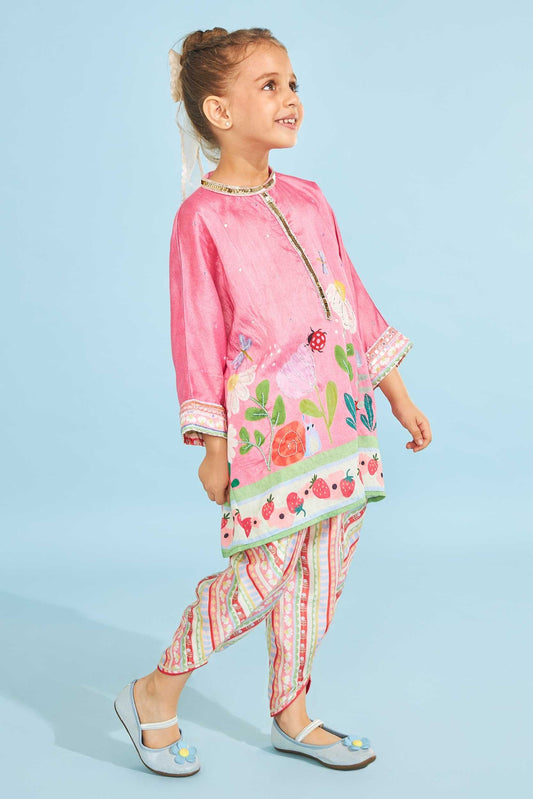 Strawberry Girls Embellished Tunic With Trousers (2 Pc Set)