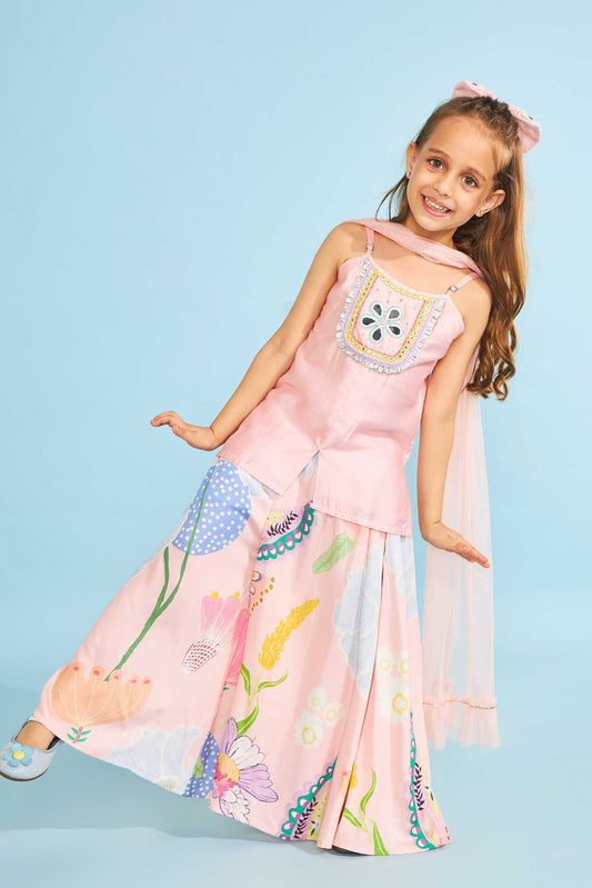 Pink Bloom Girls Embellished Cami Flared Trouser Co-ord (3 Pc)