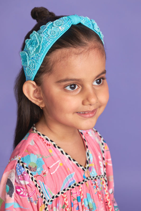 Clover blue Hand Embroidered headband/hairband on kids