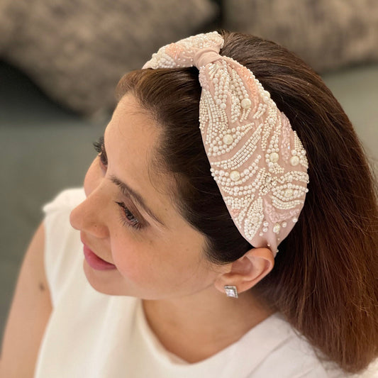 Juliette Pink Pearl Hand Embroidered Headband/Hairband