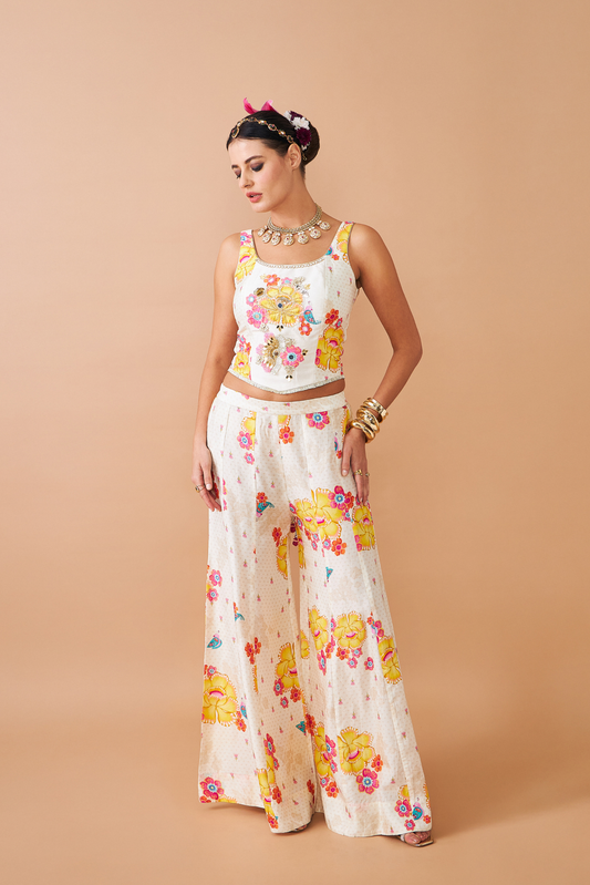 Freya Mustard Ladies Embellished Corset With Flared Trousers Co-ord (Set of 2pcs)