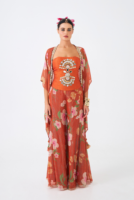 Riva Ladies Embellished Corset With Flared Trousers & Cape (Set of 3 Pcs)