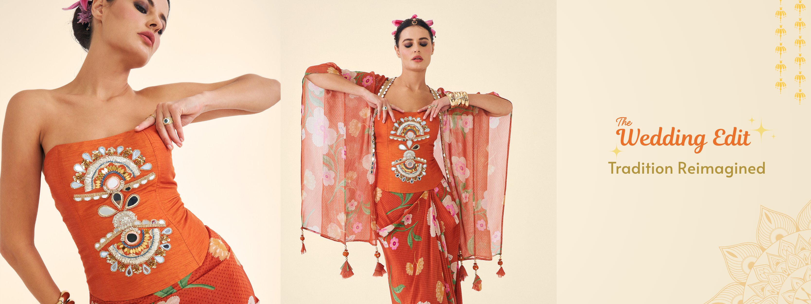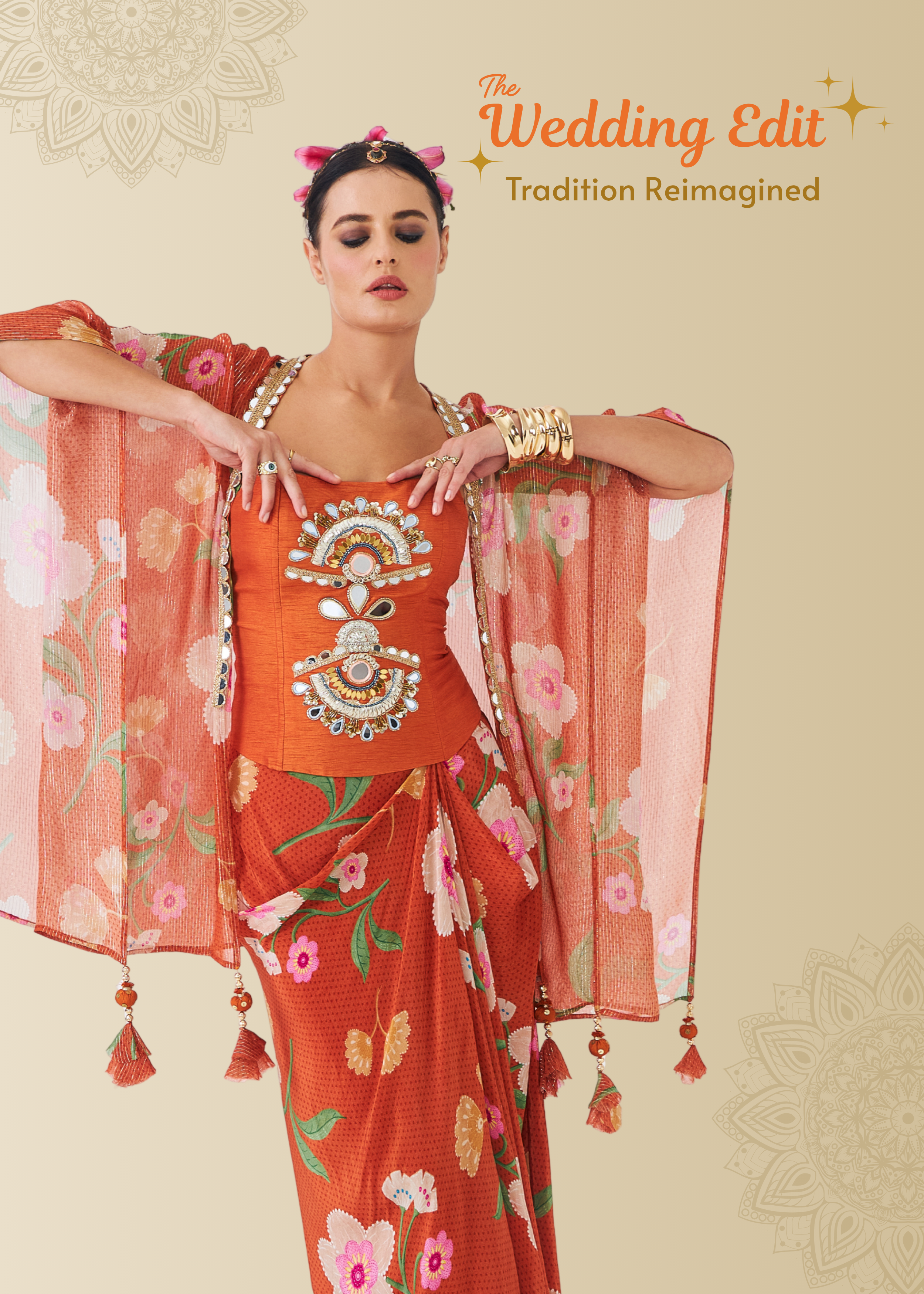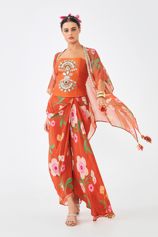 Riva Ladies Embellished Corset With Draped Skirt & Cape (Set of 3 Pcs)