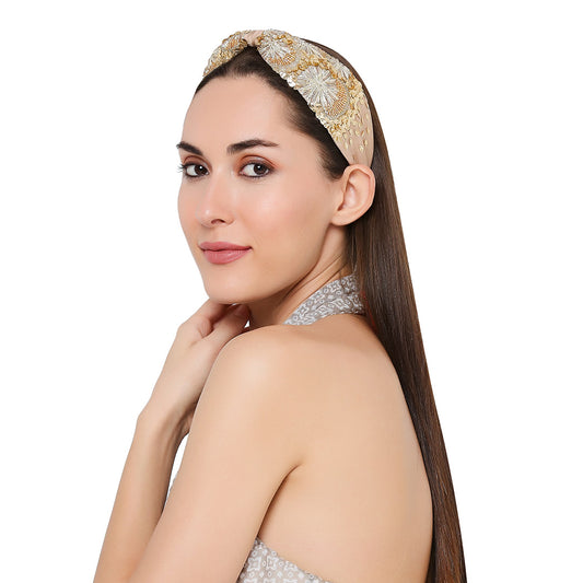 Natassha Gold Embroidered Headband