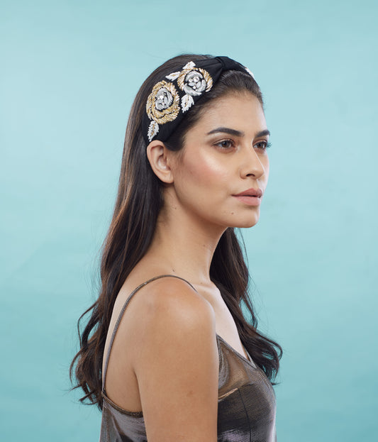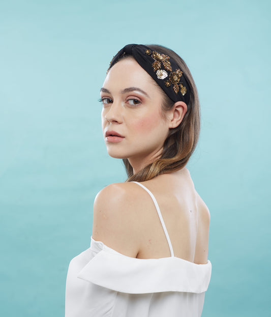 Jacqueline Black Hand Embellished Headband/Hairband