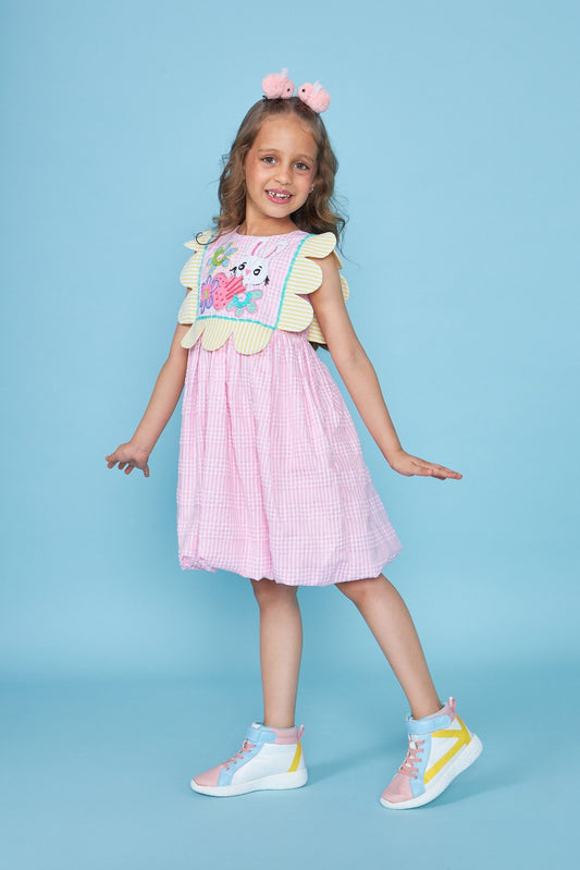 Raya Pink Girls Embellished Kaftan Top & Tulip Pant ( Set Of 2 pcs)