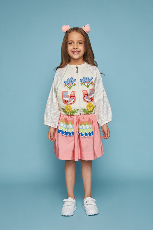 Cuckoo Embroidered Kids Jacket Skirt Coord Bloom