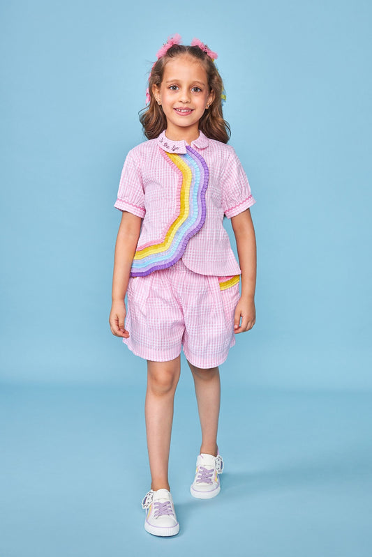Pink Rainbow Kids Embroidered Coord Set