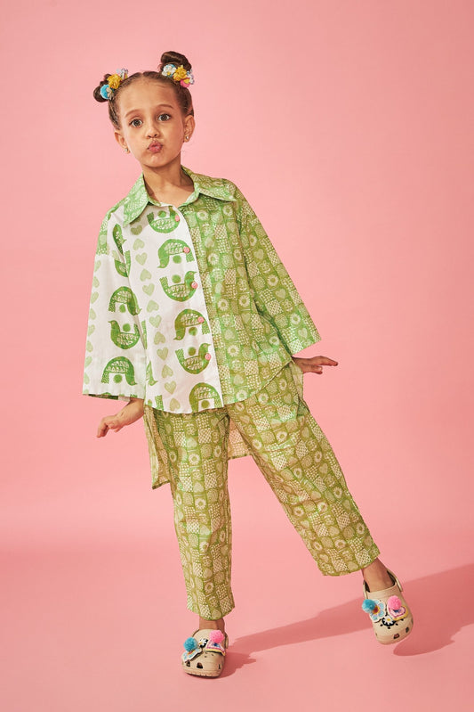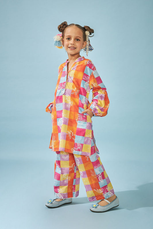 Raya Pink Girls Embellished Kaftan Top & Tulip Pant ( Set Of 2 pcs)