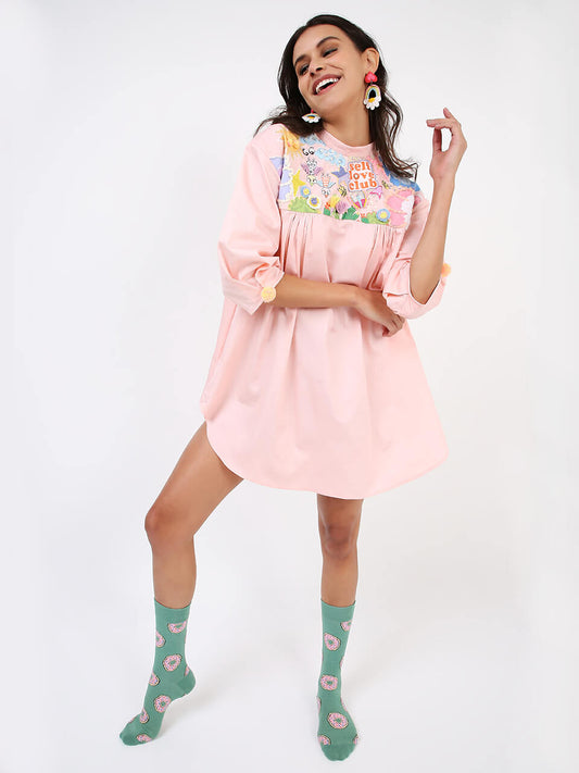 Mirror Yoke Peach Organza embellished Ladies Dress + Trouser