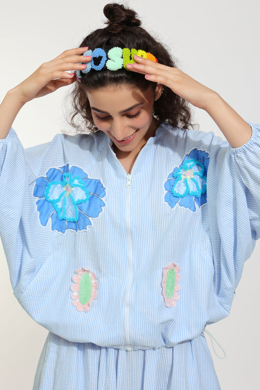 Candy Stripe Girls Embellished Wrap Top & Flared Trouser Coord (2 Pc Set)