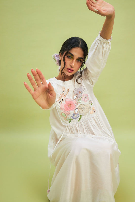 Mirror Yoke white embellished Ladies Dress - Mom & Me