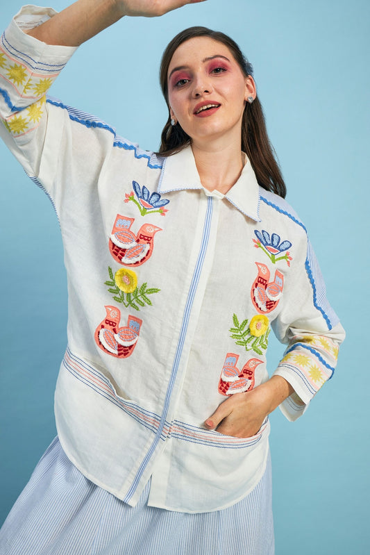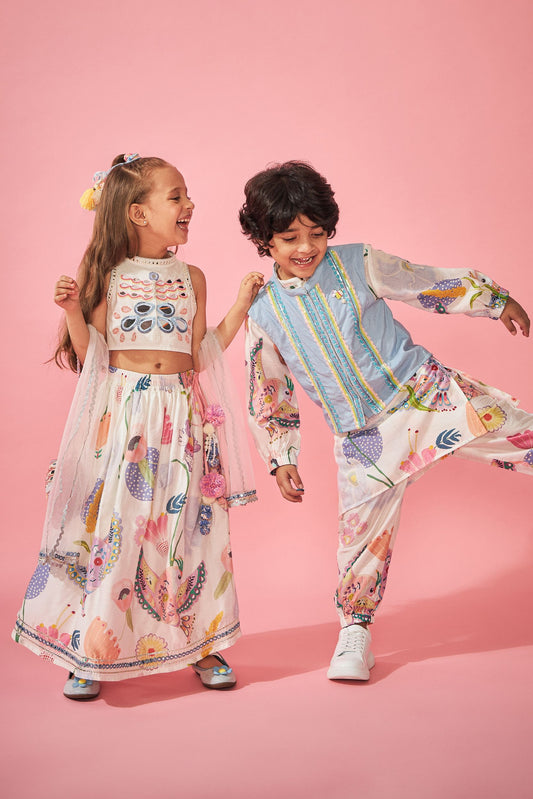 White Bloom Girls Skirt With Embellished Crop Top - Boy & Girl
