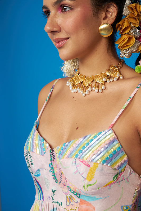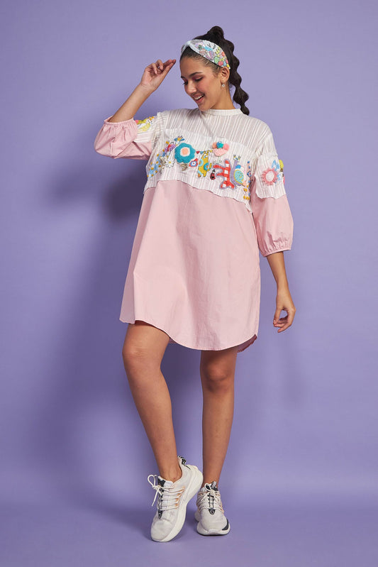 Jane Collar Embellished Pink Dress Bloom - Mom & Me