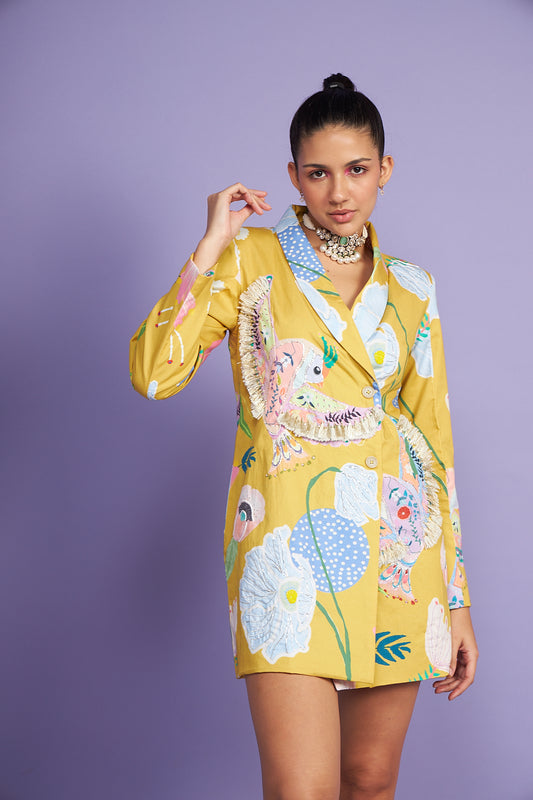 Zuri Mustard Blazer Dress with Boys Shirts Shorts Coord - Mom & Son