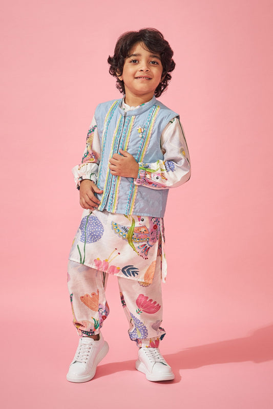 White Bloom Festive Embellished Boys Coord (3 pc set)