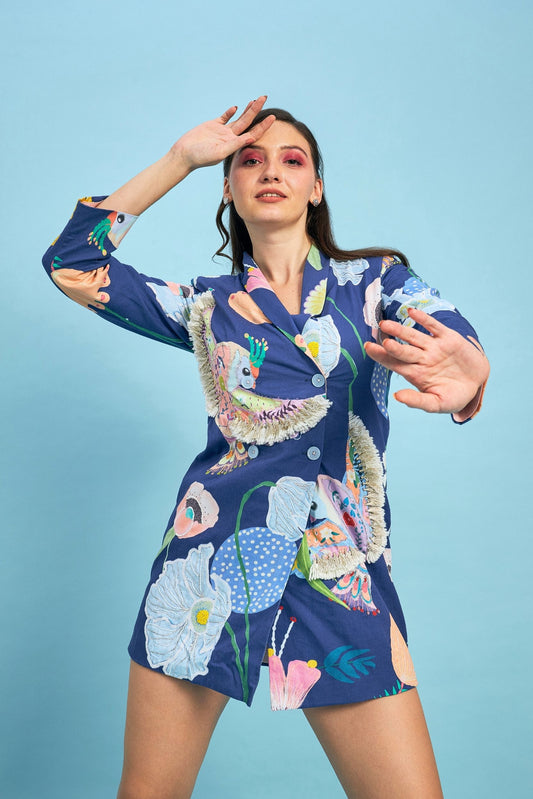 Zuri Blue Embellished women Blazer Dress