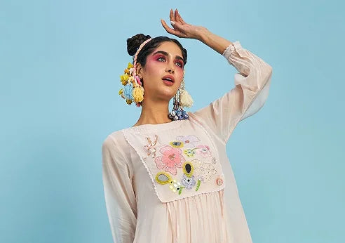 Buddy Buds Embroidered Printed Yoke Top