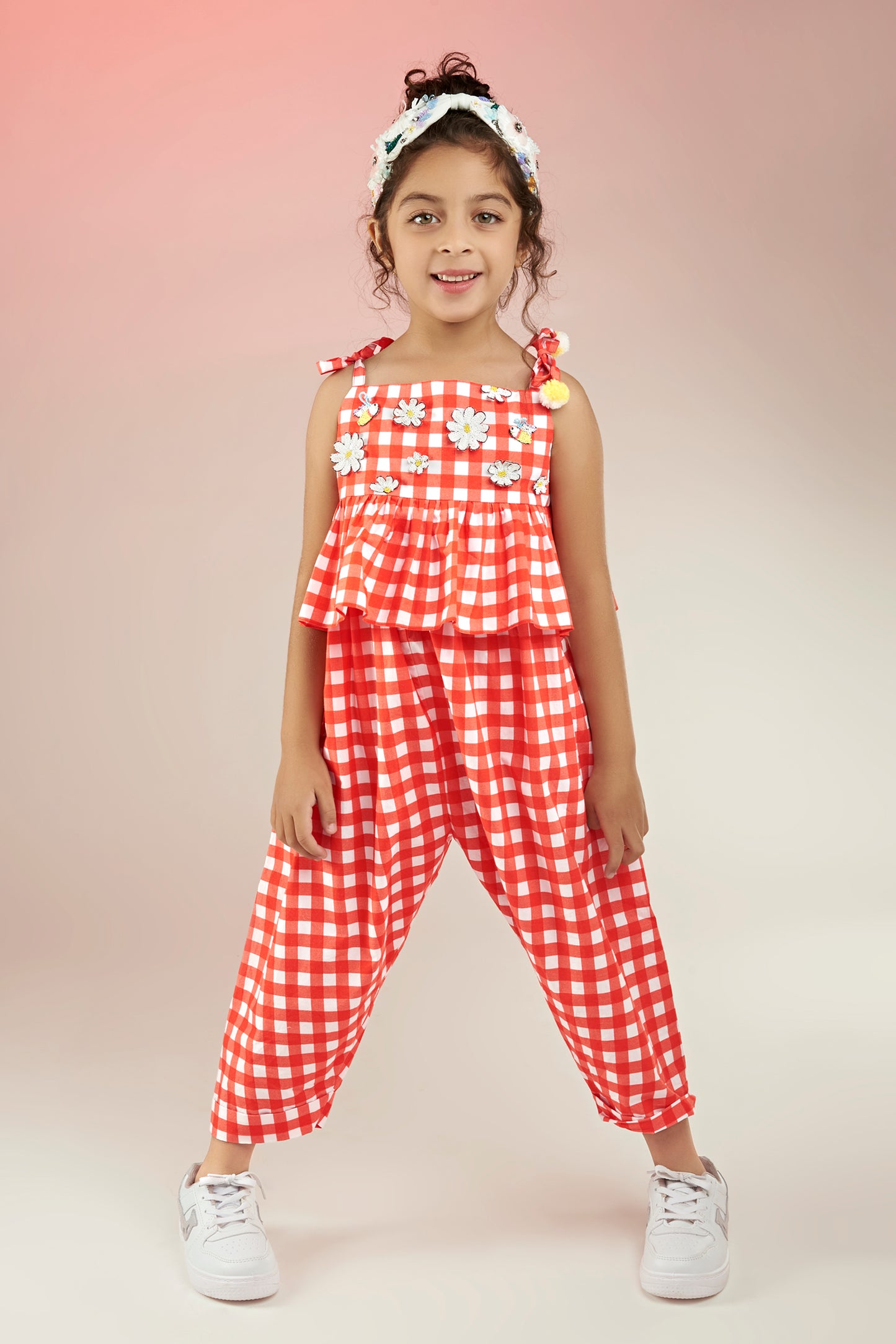 Check Out The Daisies Embellished Printed Cotton Jumpsuit Kids