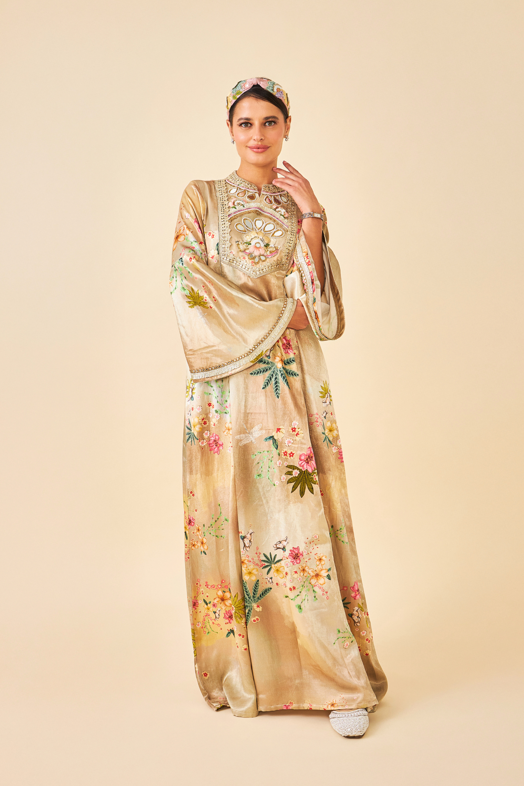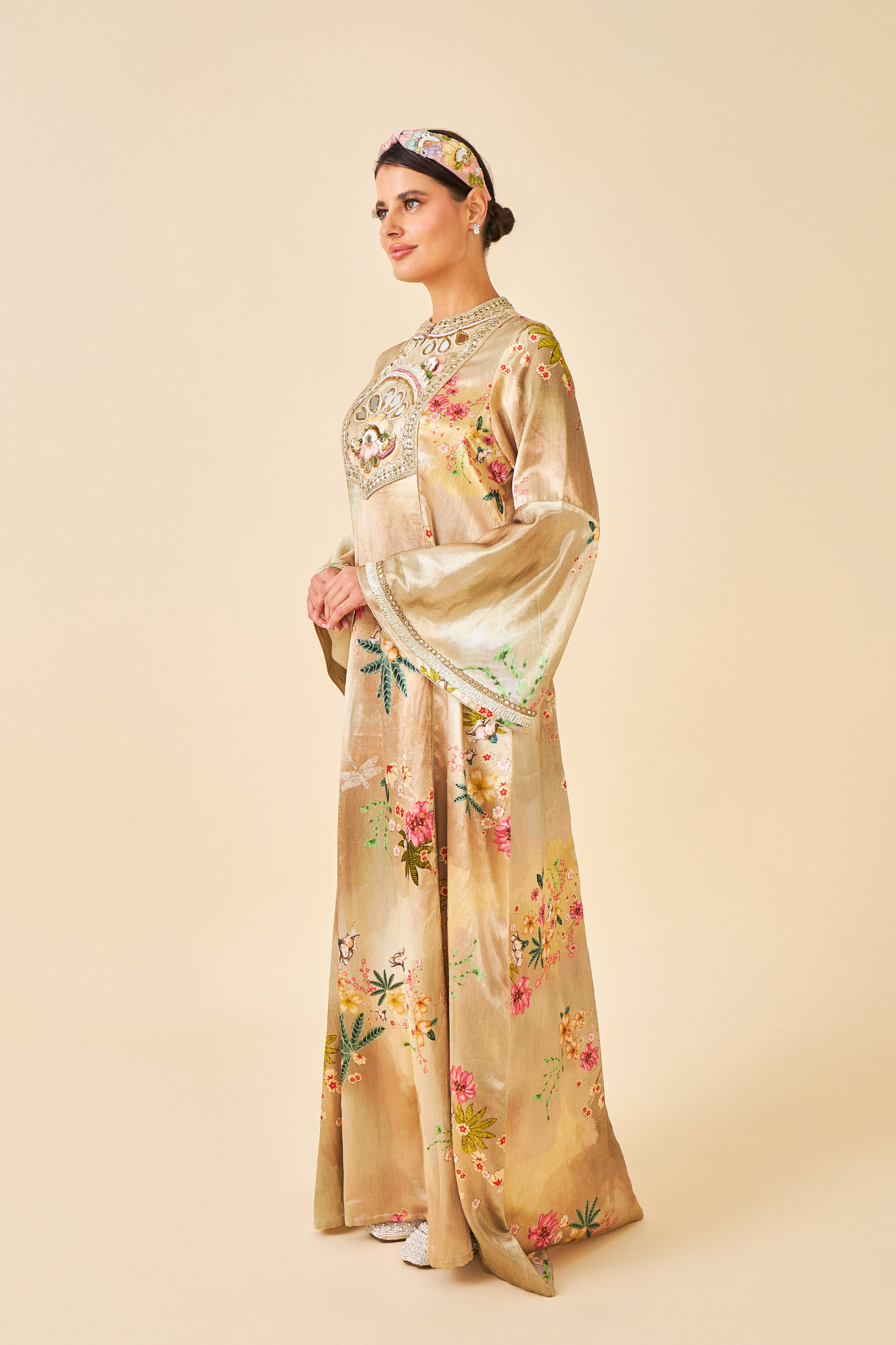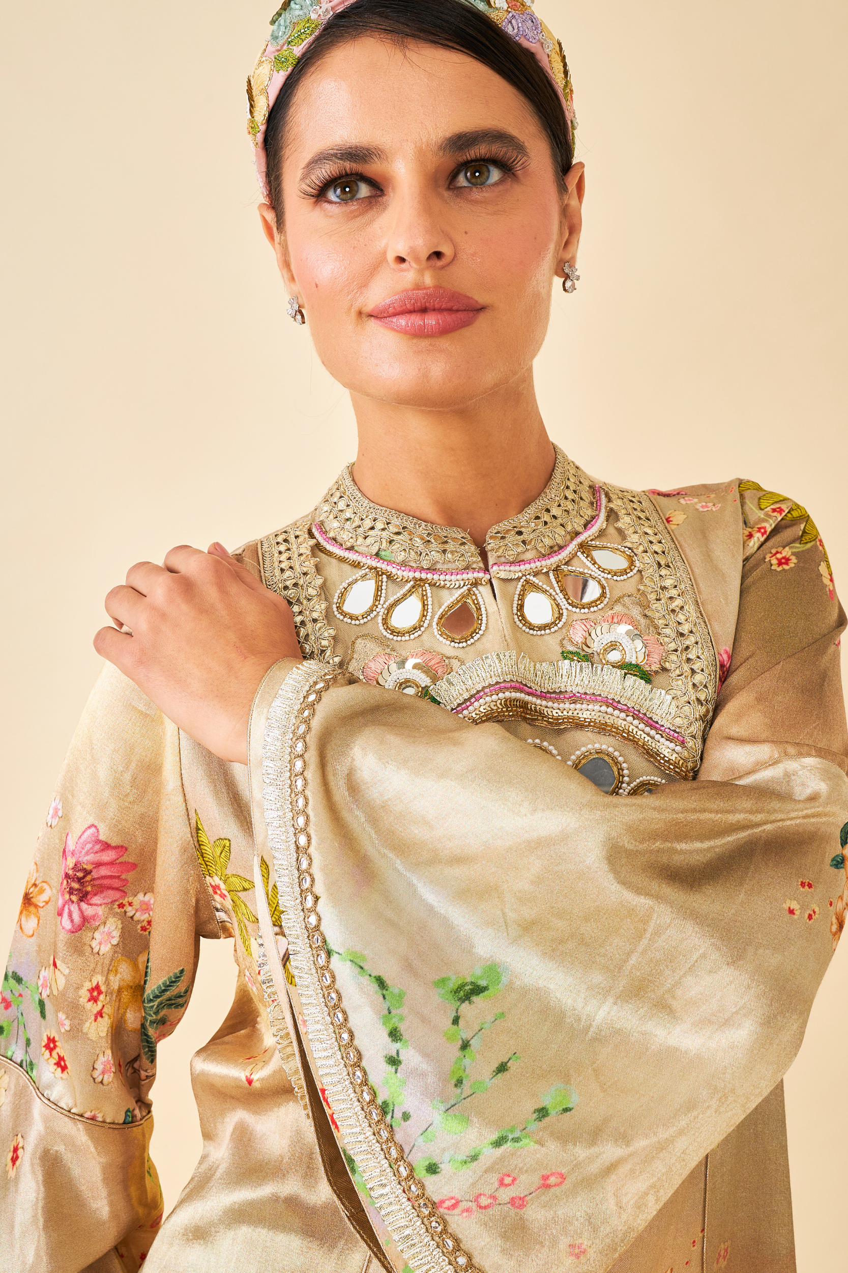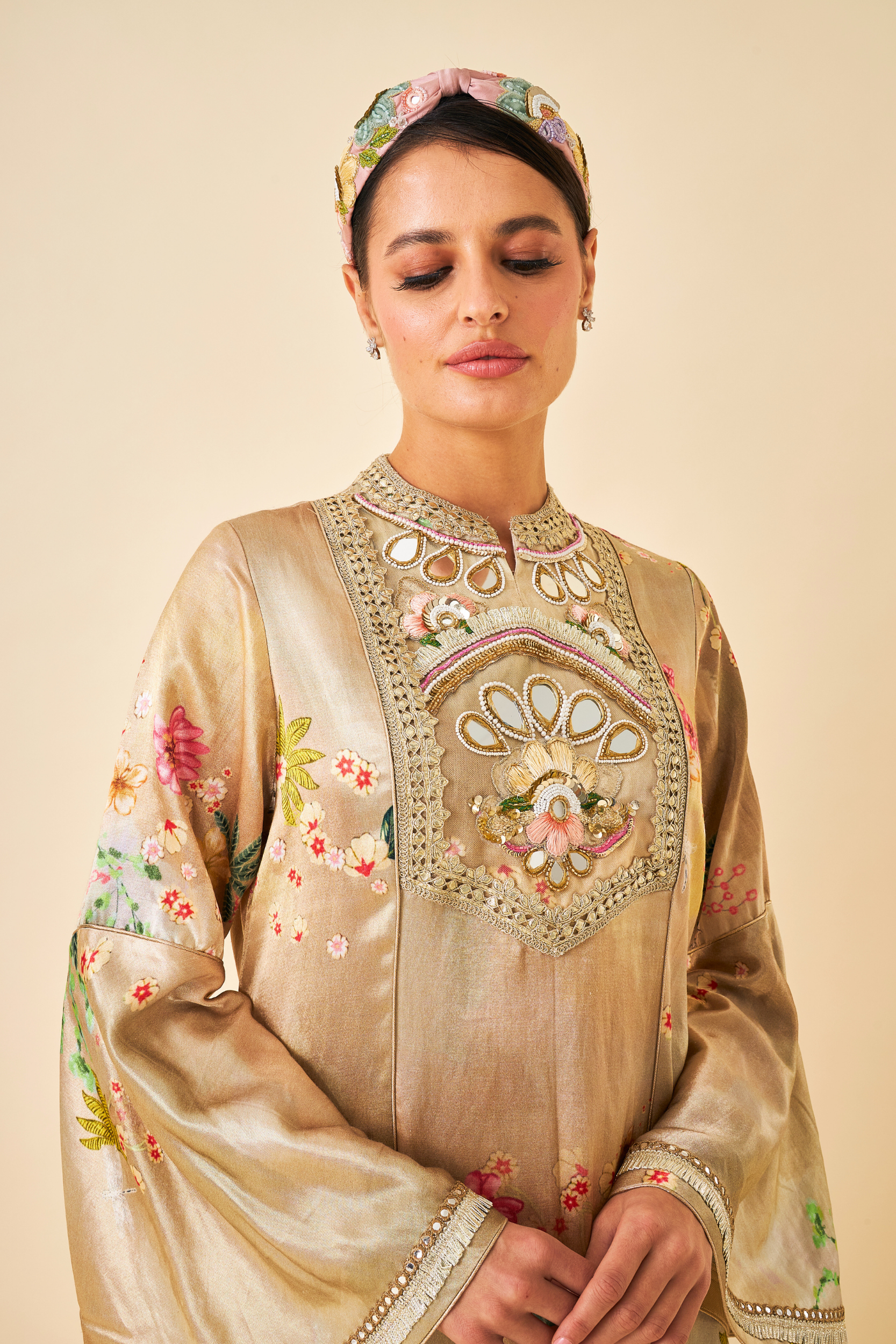 - Embroidered yoke on Mesh with mirror, thread & sequin embellishment