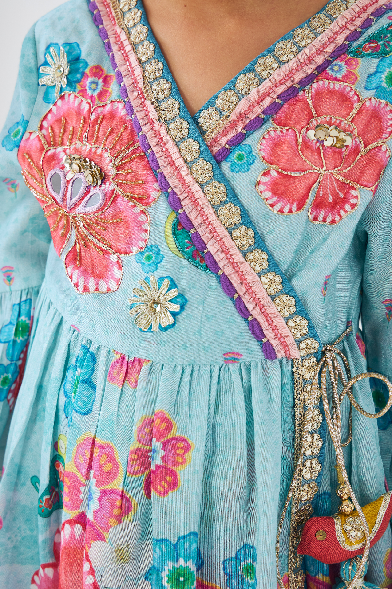 Freya Sage Embellished Girls Wrap Tunic & Flared Trouser Coord (Set of 2 Pcs)