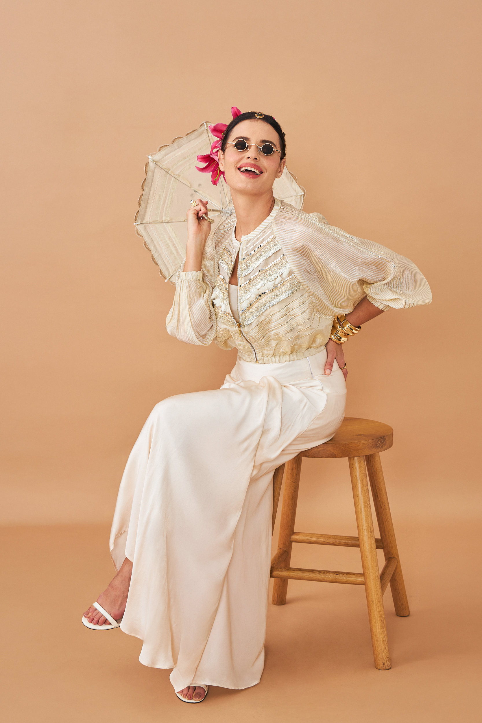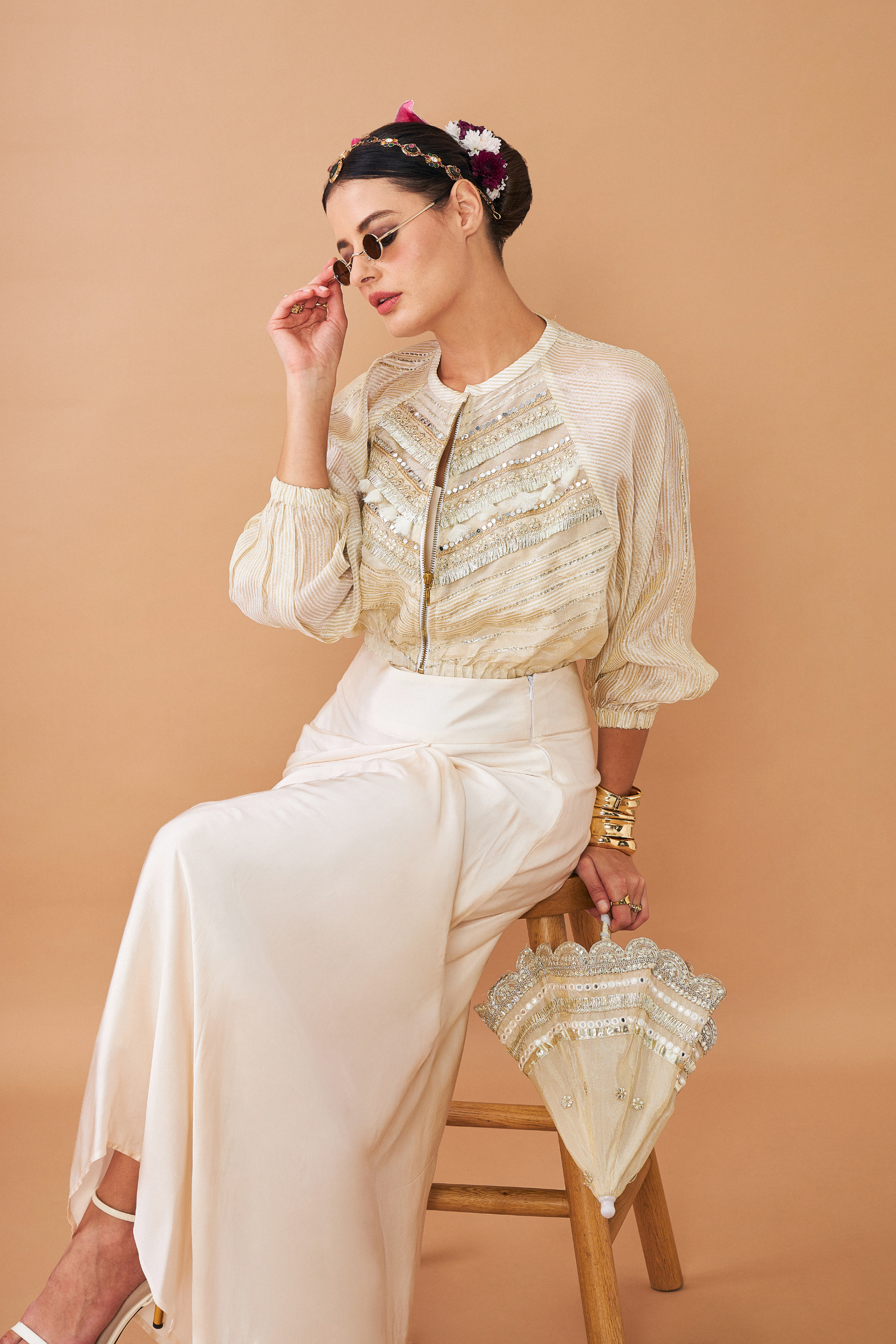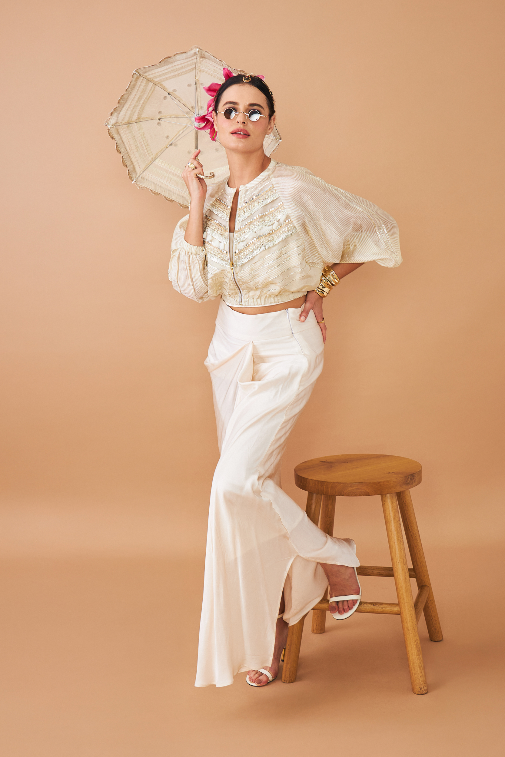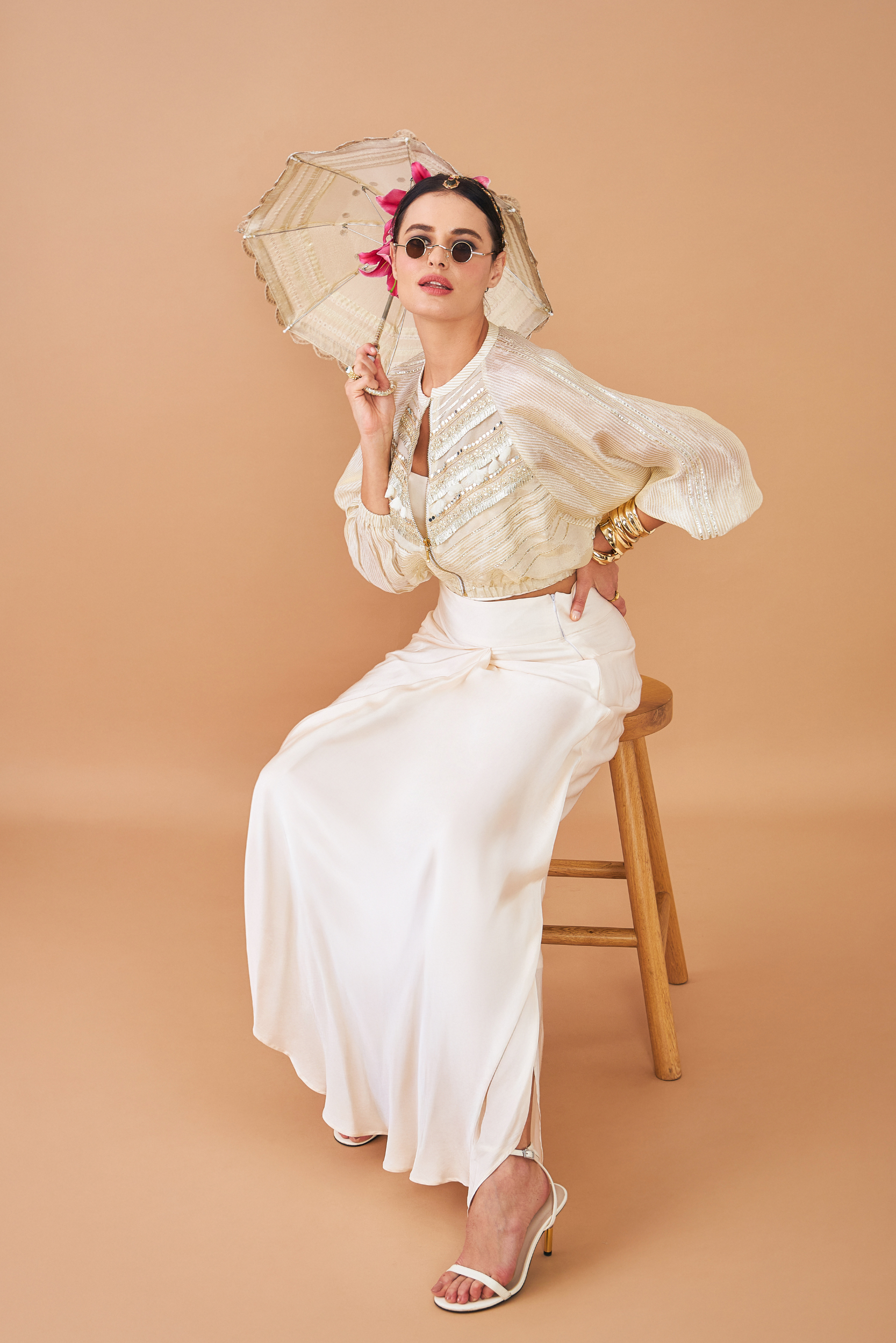 - Elegant Ivory Shade With a Fluid Drape.