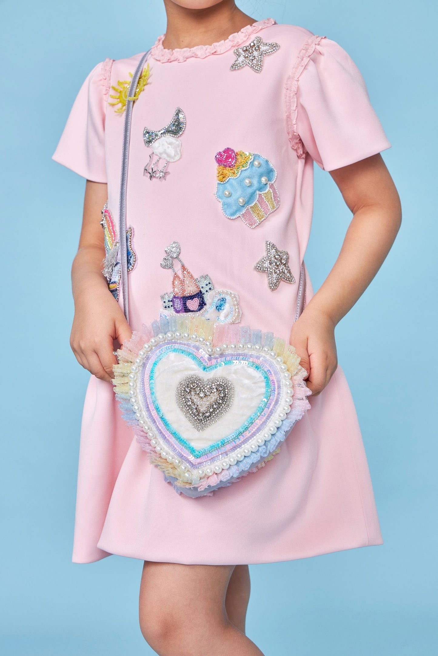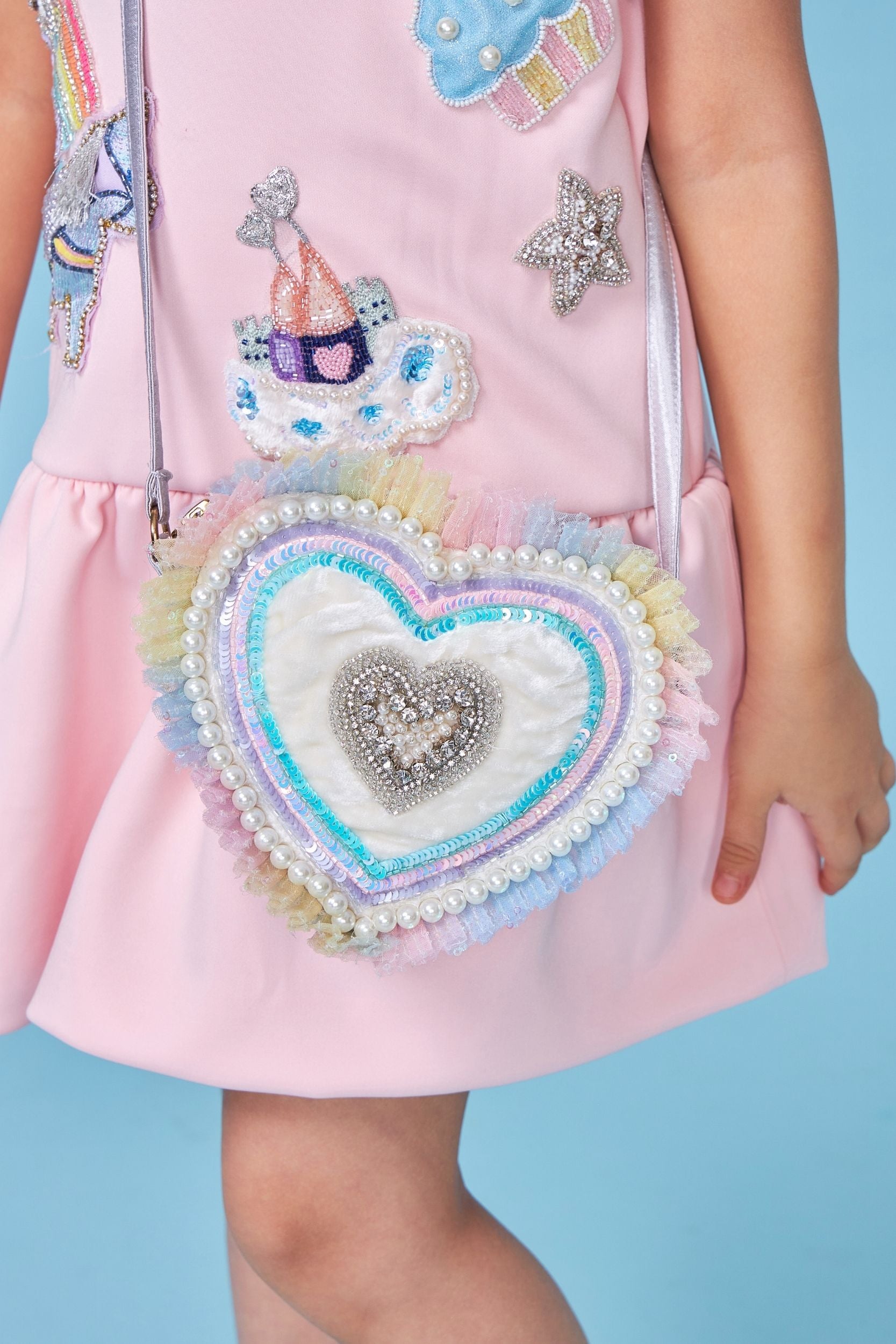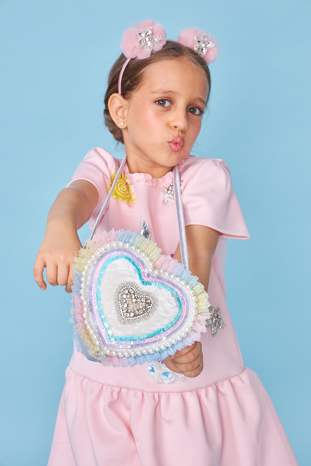 Our Noa Bag is a unicorn explosion of color and charm. Featuring intricate crystals and beautiful embellishments, it’s the perfect accessory to add a whimsical touch to any outfit. Adorned with a rainbow coloured ruffle, this bag is bursting with playful energy.